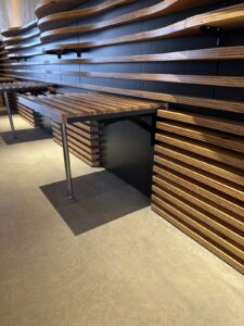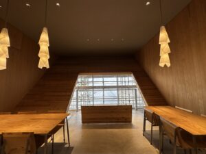 建築家隈研吾氏が建築デザインした建物は、外部塗装修繕中で全貌は見られませんでしたが、