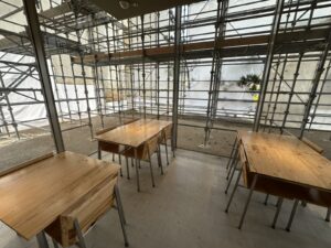 建築家隈研吾氏が建築デザインした建物は、外部塗装修繕中で全貌は見られませんでしたが、